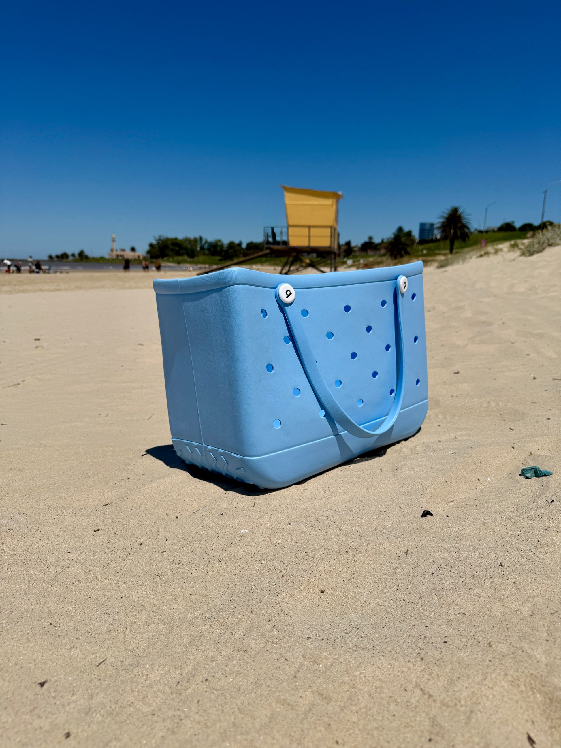 Llevá todo lo que necesitás para tus días de playa o piscina con este bolso de silicona flexible, liviano y súper práctico.